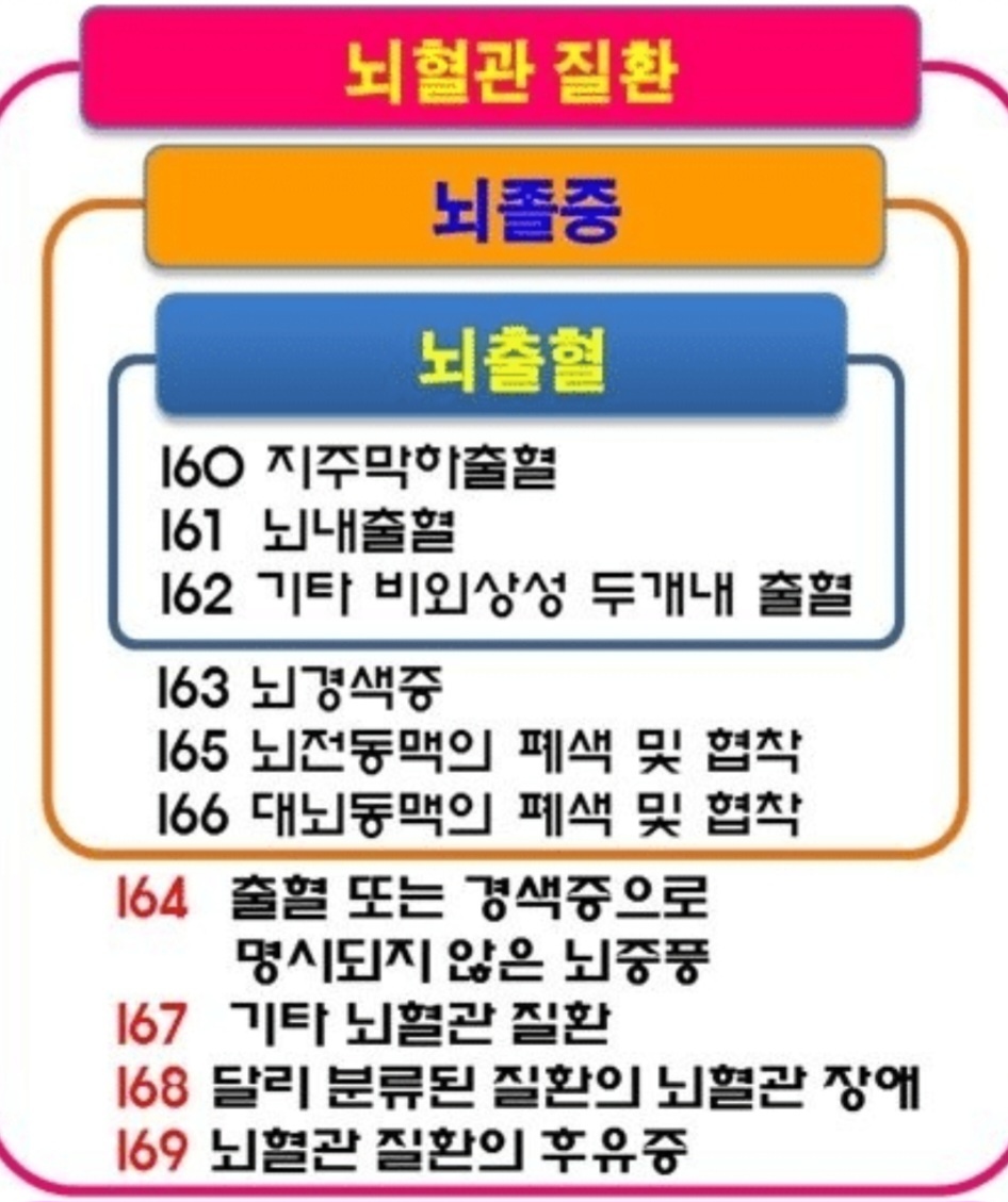 이유: 지주막하 출혈은 뇌출혈에 해당(I60코드포함)