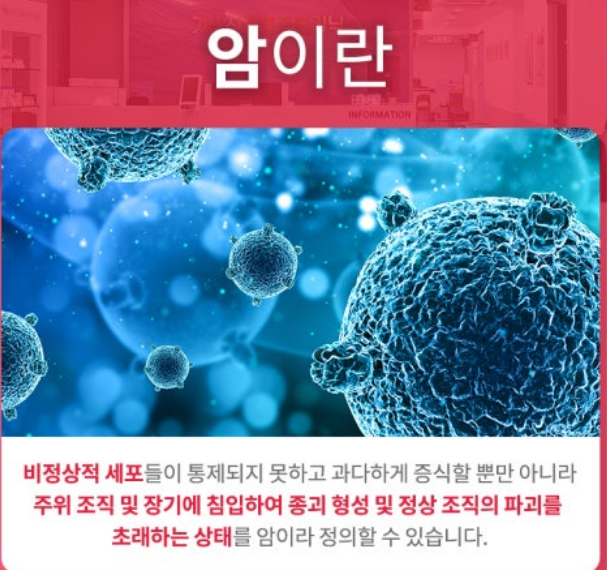 위암, 대장암, 폐암, 간암, 췌장암, 유방암, 혈액암